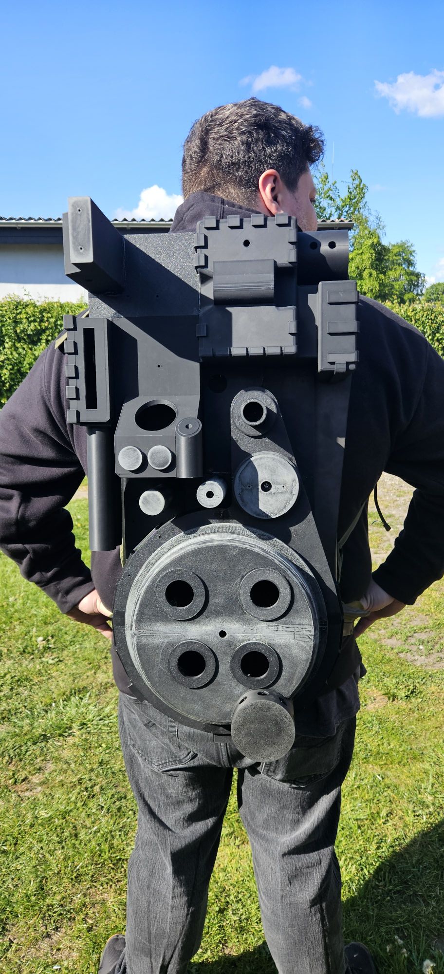 Proton pack Fra Ghostbusters!(Før den bliver malet). Printed i PLA.