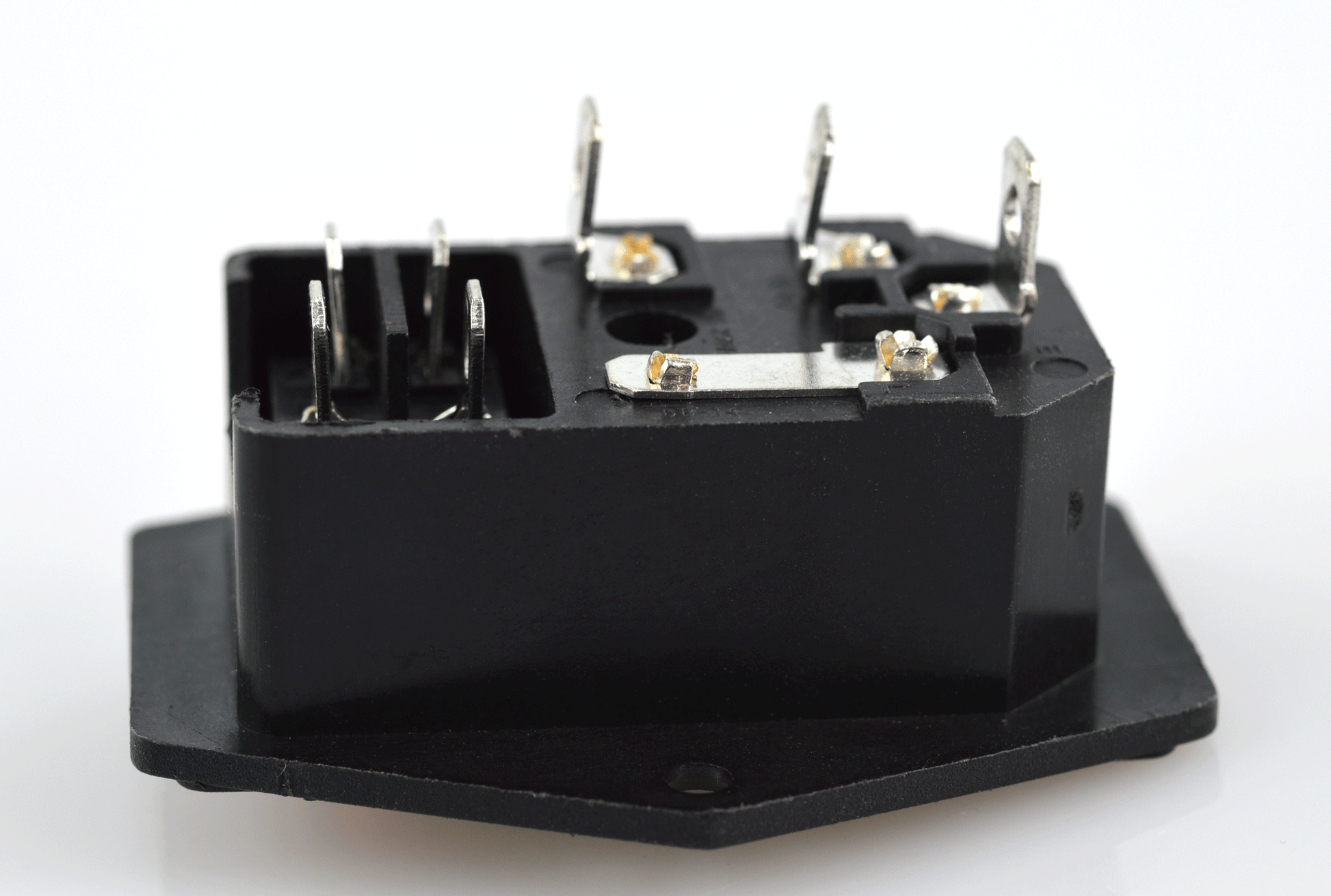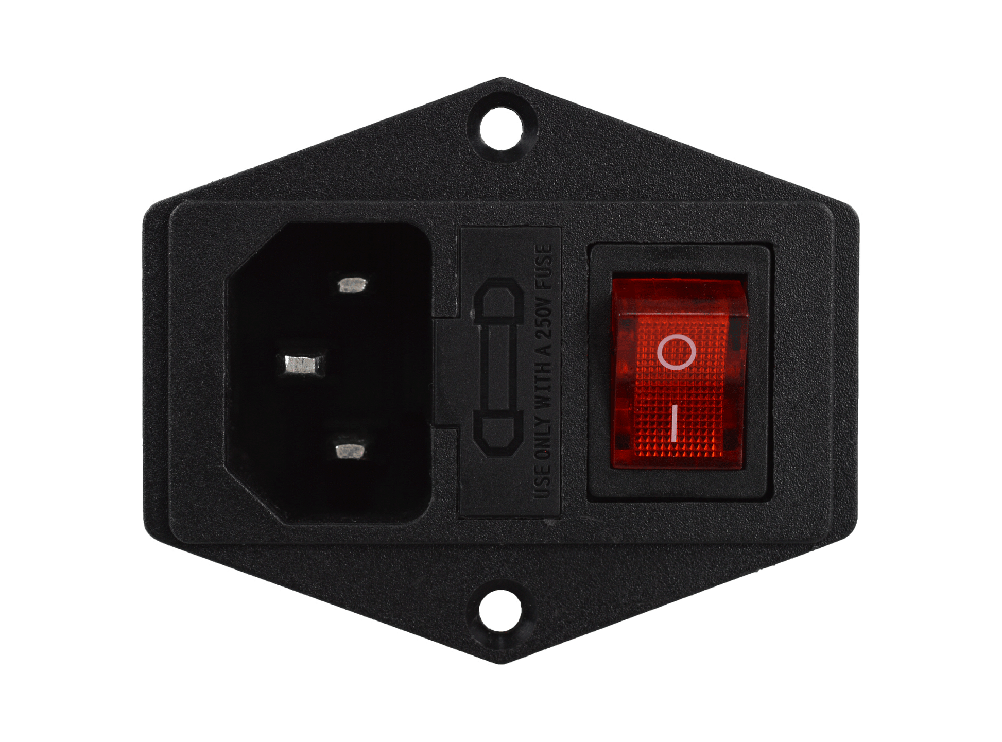 Denna 230V-strömkontakt har en på/av-brytare och säkring för pålitlig och säker drift.
