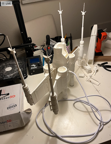 X-Wing fighter - med tubelys som motor. PLA filament.