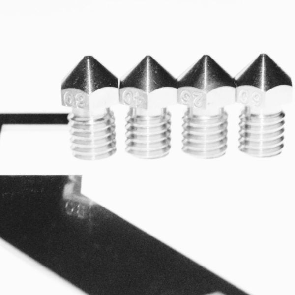 - Dessa fantastiska Matchless 0,60 mm munstycken med inbyggd kärnvärmare möjliggör upp till 30 kubik/mm per sekund vid byte av munstycken! Det betyder att du kan få ut dubbelt eller mer plast ur dina utskrifter.
