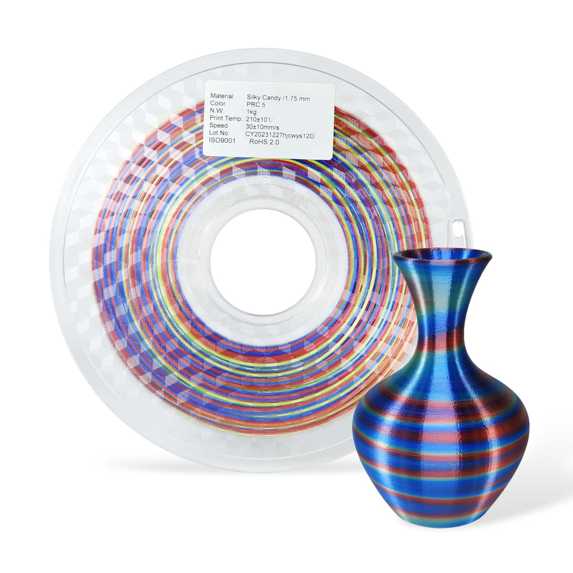 Upplev magin i färgomvandling med vårt regnbågsfärgade PLA-filament som ändrar färg medan du skriver ut. Detta unika filament ger en ny dimension av kreativitet och visuell attraktionskraft till dina 3D-utskrivna projekt. Detta PLA- filament är utformat för att ändra färg över hela spektrumet och ger ett livfullt och dynamiskt element till dina motiv.