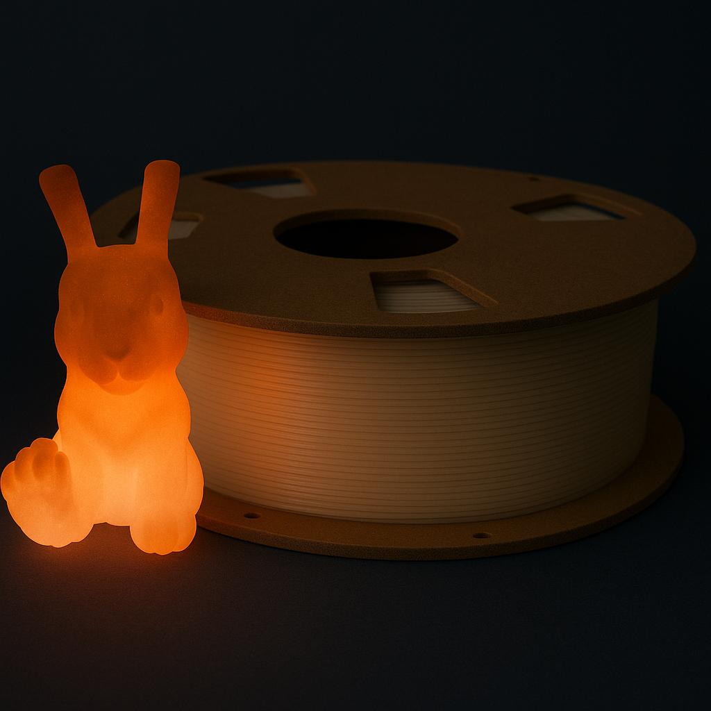 Detta filament har en fantastisk effekt och ser vitt och ljust ut. Filamentet innehåller självlysande pulver som avger ljus i mörkret efter att ha absorberat ljusenergi. När du utsätter detta PLA- filament för solljus eller UV-ljus i 30 minuter kommer det att absorbera energi och avge rent och klart ljus.