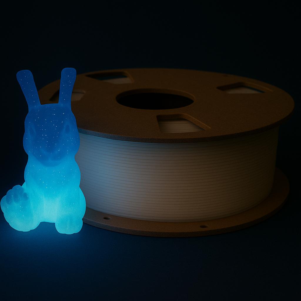 Detta filament har en fantastisk effekt och ser ljust och klart ut . Filamentet innehåller självlysande pulver som avger ljus i mörkret efter att ha absorberat ljusenergi. När du utsätter detta PLA-filament för solljus eller UV-ljus i 30 minuter kommer det att absorbera energi och avge ren och klar belysning.