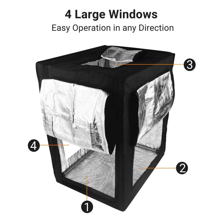 3DSUPREME-höljet är utformat med stor flexibilitet och flera alternativ för att observera dina utskrifter. Det finns en öppning med dragkedja och kardborreband framtill och upptill. Dessutom kan du stänga framdelen och toppen tillsammans med dragkedjan, vilket gör det enkelt att placera din skrivare etc. På baksidan finns plats för att ansluta en luftrenare.