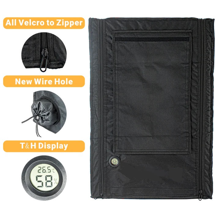 3DSUPREME-höljet är utformat med stor flexibilitet och flera alternativ för att observera dina utskrifter. Det finns en öppning med dragkedja och kardborreband framtill och upptill. Dessutom kan du stänga framdelen och toppen tillsammans med dragkedjan, vilket gör det enkelt att placera din skrivare etc. På baksidan finns plats för att ansluta en luftrenare.