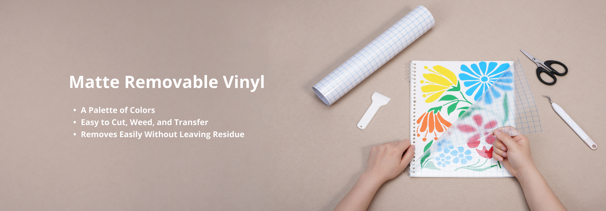 Detta set innehåller 10 ark avtagbar vinyl i en livfull färg med en elegant matt finish. Bambu Matte Removable Vinyl är enkel att klippa, ta bort, överföra och styla, och lämnar inga limrester när du vill ändra designen. Perfekt för att dekorera heminredningsartiklar, personliga presenter, skyltar och accessoarer.