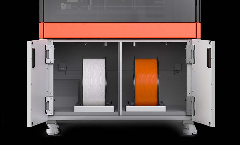 Två uppvärmda filamentkammare säkerställer att material av teknisk kvalitet med känsliga miljökrav förblir torra i en konsekvent kontrollerad miljö för klassledande kvalitet. Båda kamrarna, skrivarbädden och bygghöljet har också oberoende temperaturkontroller – vilket går utöver branschstandarder för att ge dig maximal kontroll över din 3D-utskriftsmiljö.