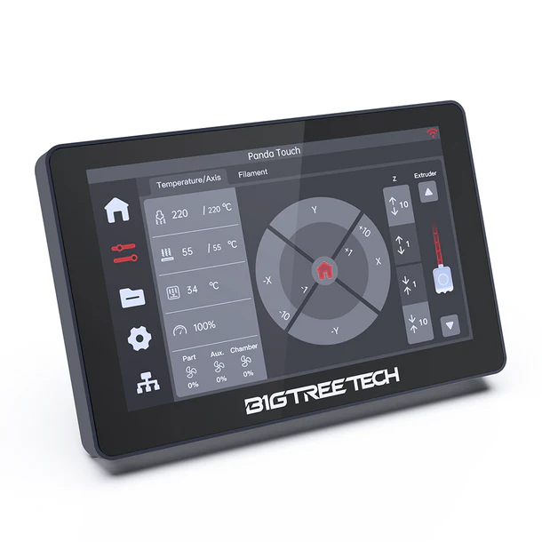 Panda Touch är en 5-tums pekskärm utvecklad av BIGTREE Technology Co., LTD. Den erbjuder ett snyggt användargränssnitt med praktiska funktioner och kan användas som en alternativ eller ersättningsskärm för Bambu P1P och Bambu P1S. Den fungerar även med X1- och A1-serien och stöder grupputskrift och styrning av upp till 10 Bambu Labs-skrivare.
