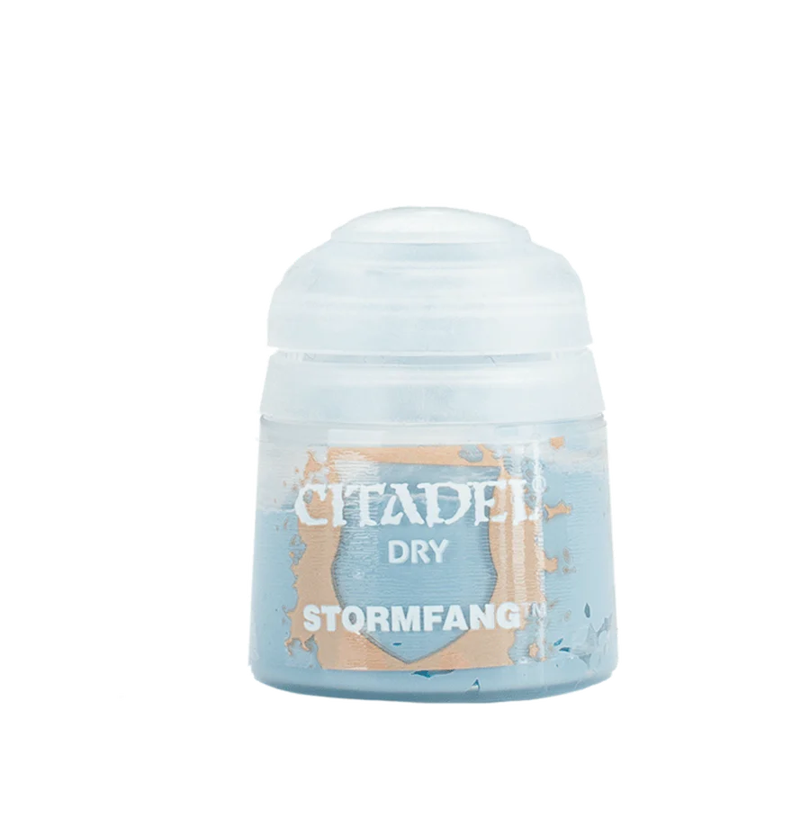 Citadel Dry akrylmaling har en tykkere konsistens end andre Citadel-malinger, hvilket gør dem perfekte til drybrush-teknikken, der er en nyttig måde at fremhæve detaljer hurtigt og let. Denne bøtte indeholder 12ml Stormfang.