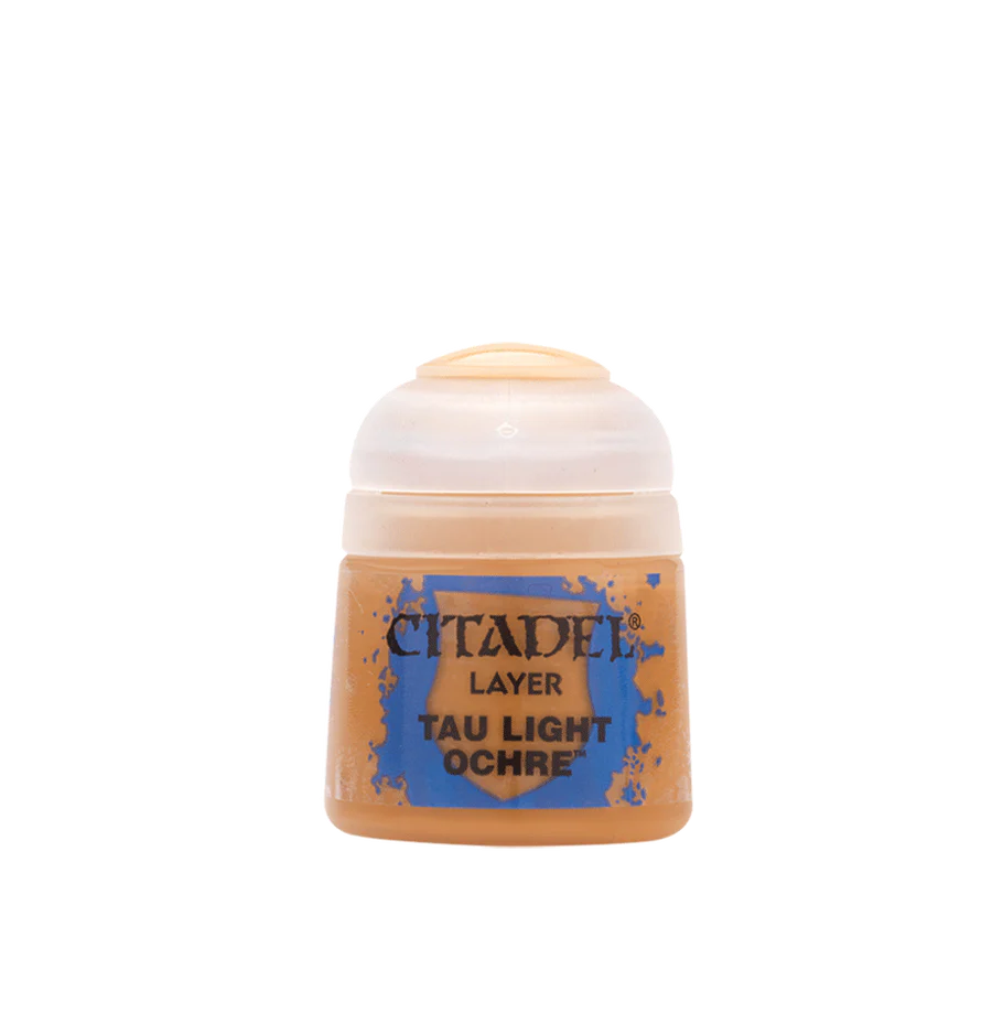 Citadel Layer er akrylmaling der bruges til at male ydre lag ovenpå en basecoat for at give definition og fremhæve detaljer. Denne bøtte indeholder 12ml Tau Light Ochre.