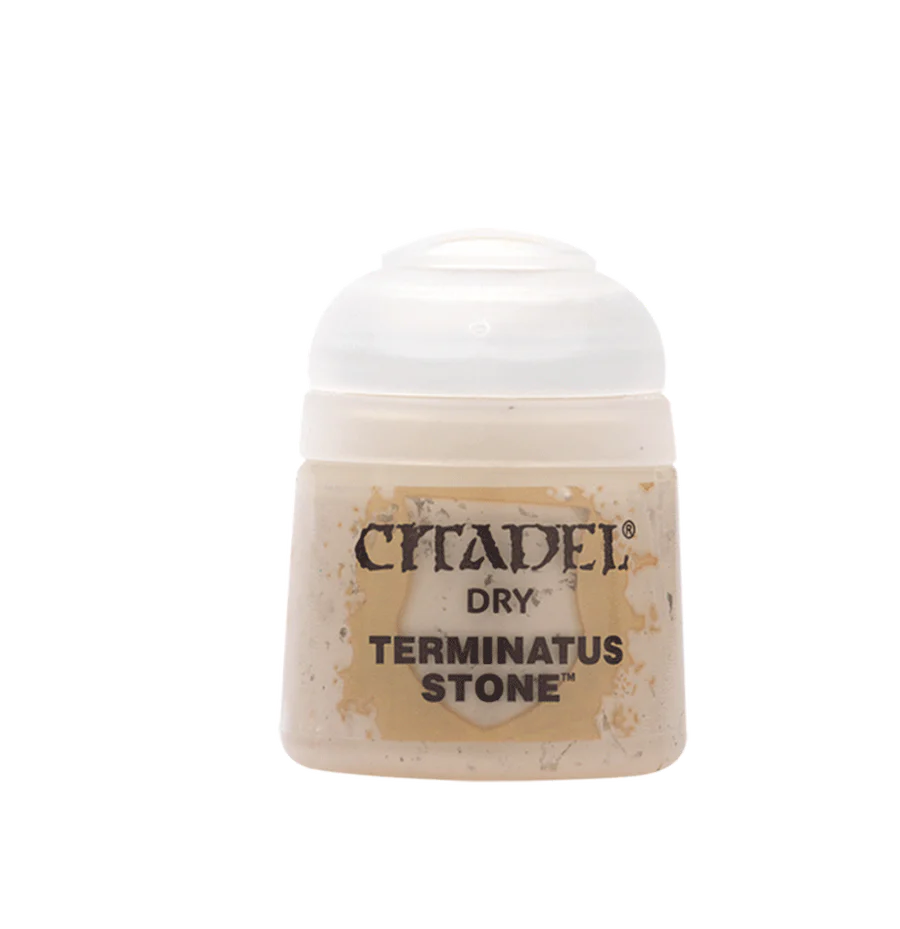 Citadel Dry akrylmaling har en tykkere konsistens end andre Citadel-malinger, hvilket gør dem perfekte til drybrush-teknikken, der er en nyttig måde at fremhæve detaljer hurtigt og let. Denne bøtte indeholder 12ml Terminatus Stone.