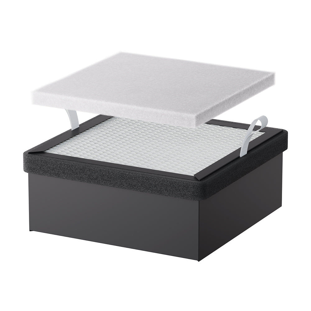 Filtret är enkelt att byta ut och säkerställer att din luftrenare alltid levererar optimal prestanda. Med en effektiv filtreringsgrad på upp till 99,97 % (ner till 0,3 μm partikelstorlek) bidrar det till en hälsosammare och bekvämare arbetsmiljö – både i hobbyrum, makerspaces och på kontoret.