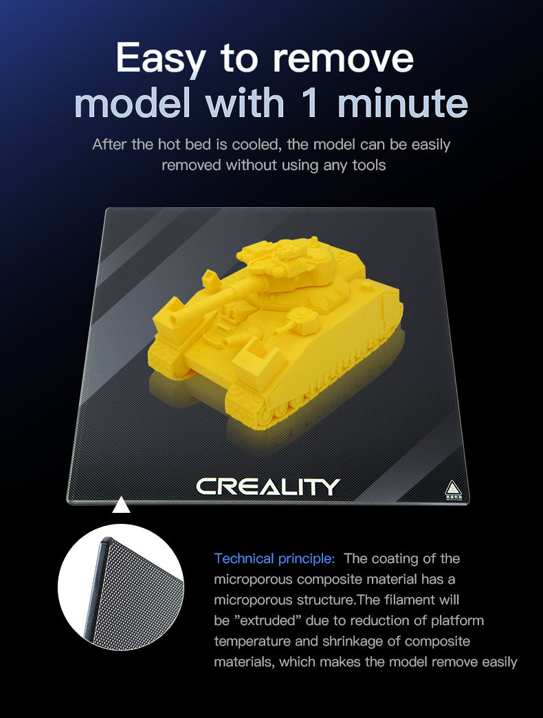 Glasplatta för din CR-6 MAX 3D-skrivare. Detta är en glasplatta tillverkad i hög kvalitet från Creality. Med denna glasplatta är det enkelt att ta bort din 3D-utskrivna modell.
