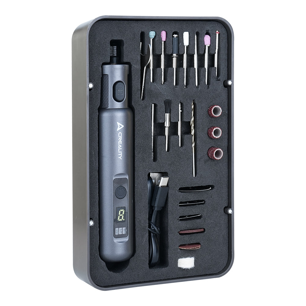 Creality 3D – Cordless Rotary Tool Kit är det perfekta verktyget för tillverkare, modellbyggare och 3D-utskriftsentusiaster som behöver precision och flexibilitet vid efterbehandling av utskrifter. Detta kompakta och batteridrivna rotationsverktyg låter dig slipa, polera, gravera och skära med fullständig rörelsefrihet – utan krångel med sladdar.