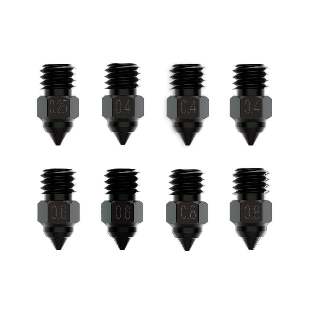 - Munstycksstorlek: 0,25 mm, 0,4 mm, 0,6 mm och 0,8 mm