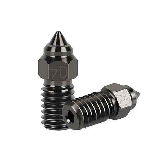 Uppgradera din Ender-3 V3 SE med dessa 0,4 mm härdade stålmunstycken, utformade för att ge hög prestanda och lång livslängd – även vid utskrift med slipande material som kolfiber och självlysande filament.