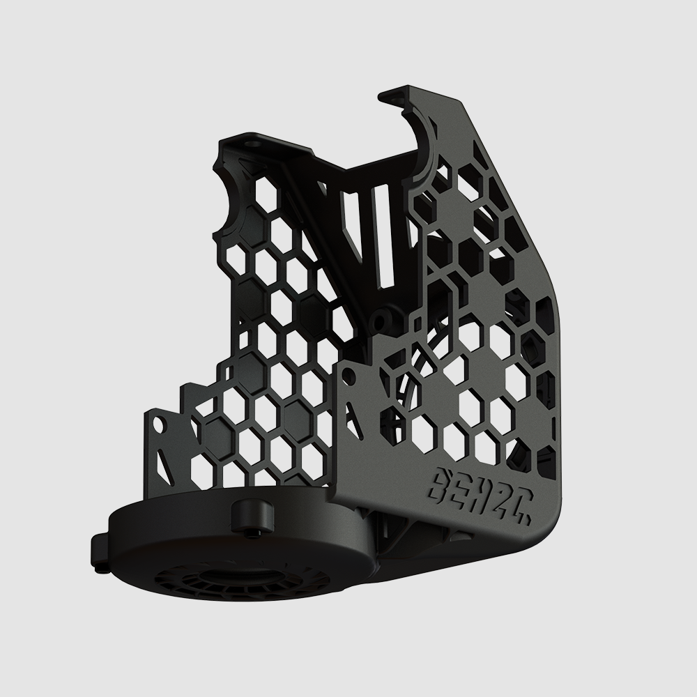 Fläktkanalen är 3D-printad med Multi Jet Fusion (MJF)-teknik i PA12, vilket ger en slät yta, låg vikt och hög värmebeständighet. Den lätta konstruktionen hjälper till att minska vibrationer och resonans vid snabba rörelser, vilket skyddar skrivarens mekaniska struktur och förlänger dess livslängd.