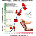 Dimafix har egenskapen att den ger olika vidhäftning vid olika temperaturer.