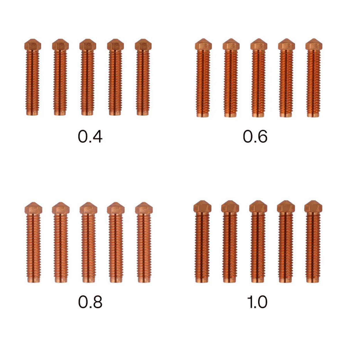Munstyckena är lämpliga för en mängd olika material som PLA, ABS och PETG och är utformade för att motstå höga temperaturer under krävande utskrifter.