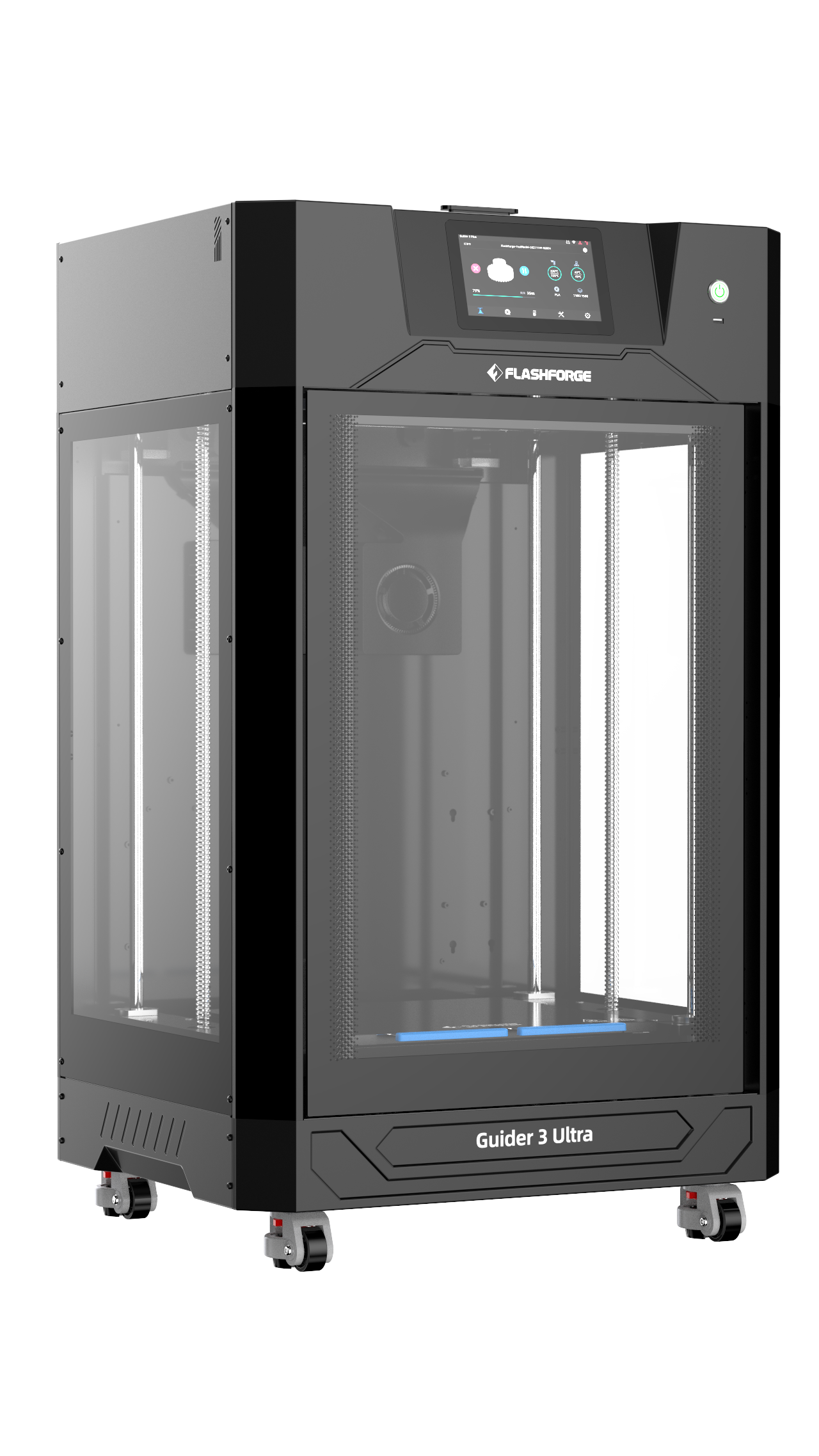 Flashforge Guider 3 Ultra har en stor byggyta på 330 x 330 x 600 mm i enkel extruderläge och 300 x 330 x 600 mm i dubbel extruderläge, vilket gör att du kan producera stora modeller utan att behöva dela upp dem, vilket sparar tid och ökar produktiviteten.