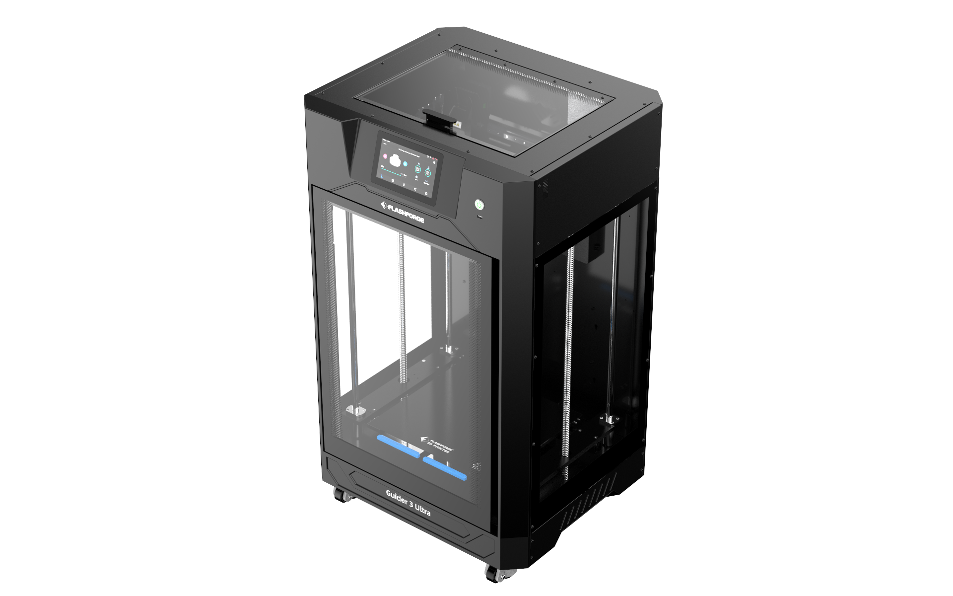 Flashforge Guider 3 Ultra har en 7-tums smart LCD-pekskärm med ett intuitivt användargränssnitt, Wi-Fi- och Ethernet-anslutning samt en USB-kontakt. Maskinen levereras med FlashPrint-skärprogramvaran, som erbjuder ett användarvänligt gränssnitt och avancerade funktioner, inklusive förhandsgranskning och intelligent banplaneringsalgoritm, effektiv hantering av flera maskiner och automatisk reparation av skadade masker.