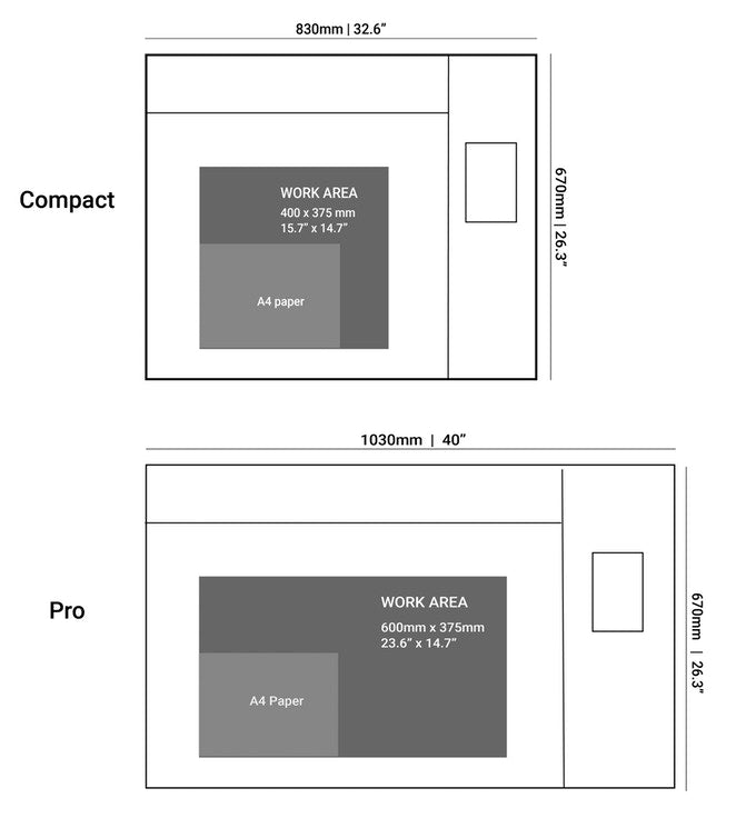 Det vänliga priset och den kompakta designen gör Beambox Pro lämplig för alla hem, skolor eller småföretag. Med sin storlek (25 x 103 x 67 cm) är den den kraftfullaste laserskäraren/gravören för skrivbordsbruk i FLUX-familjen.