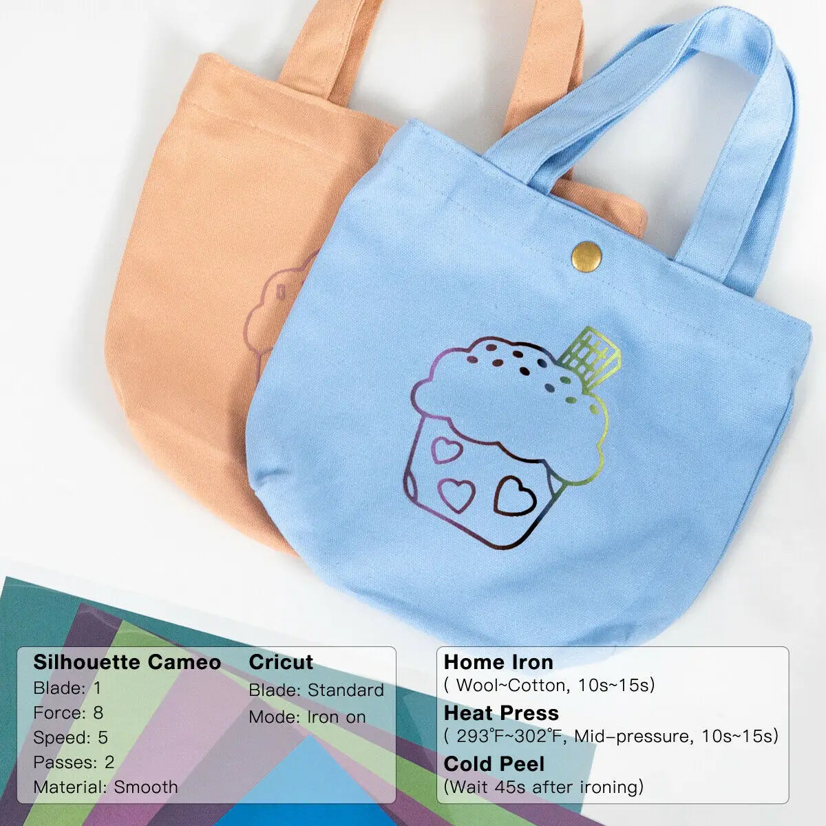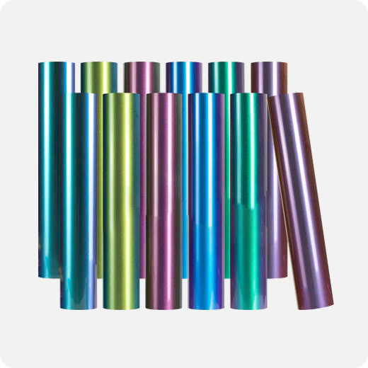 Varje paket med Chameleon HTV värmeöverföringsvinyl innehåller 12 ark av vår premium PU HTV-vinyl i 6 livfulla gradientfärger som uppfyller alla dina projektbehov. Detta unika material skapar en fantastisk effekt där färgerna ändras beroende på betraktningsvinkeln. Våra material är SGS-certifierade och miljövänliga, samtidigt som de erbjuder en exceptionell elasticitet och mjukhet. Detta gör dem perfekta för att dekorera barnkläder och accessoarer. Vår Chameleon HTV värmeöverföringsvinyl är ett perfekt val för att skapa minnesvärda presenter till Halloween, jul och födelsedagar!