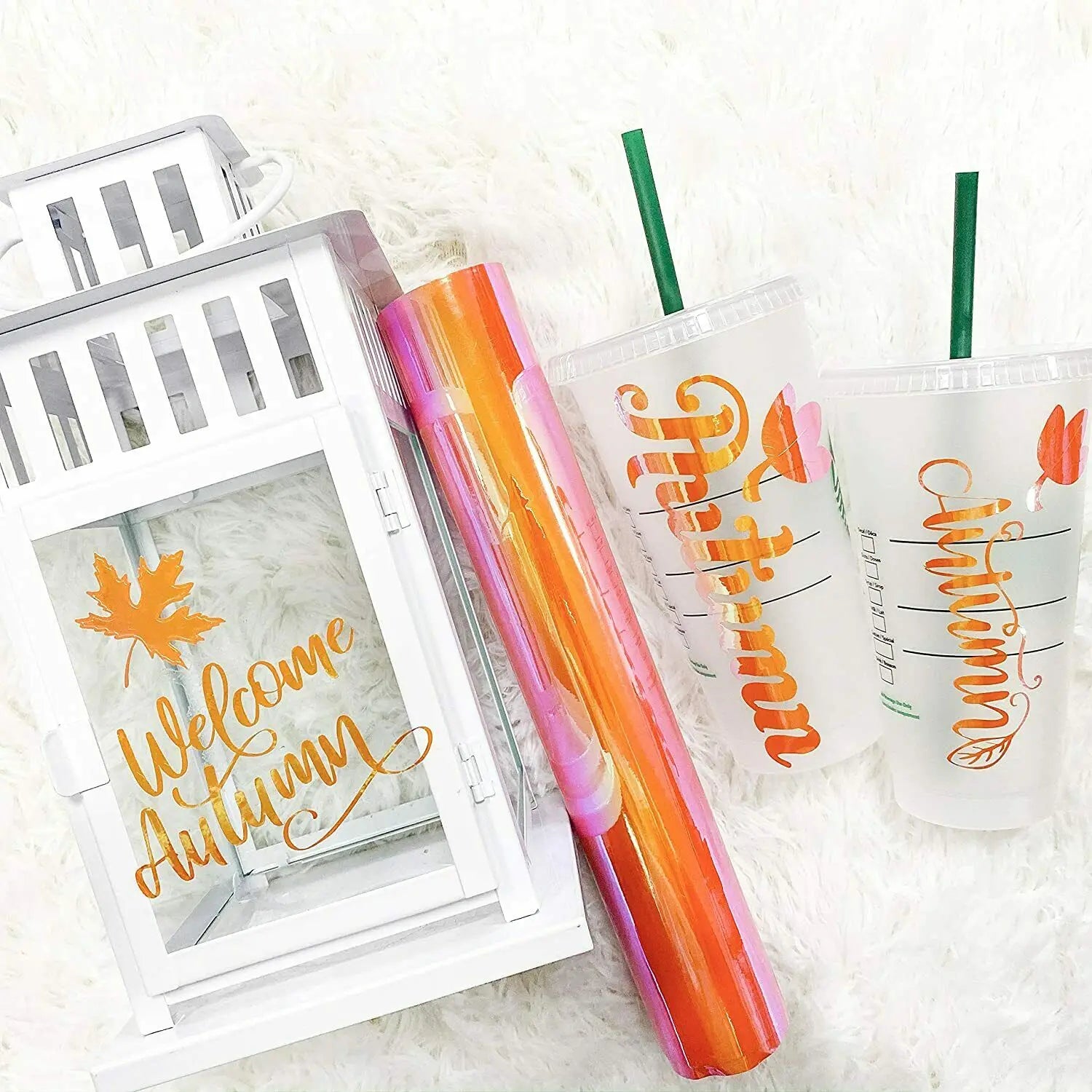 HTVRONT holografisk vinyl finns i flera högkvalitativa färger till ett överkomligt pris. Denna vinyl skiftar vackert i varje färg. Med en glittrande finish låter denna självhäftande folie dig skapa fler unika och fantastiska projekt.