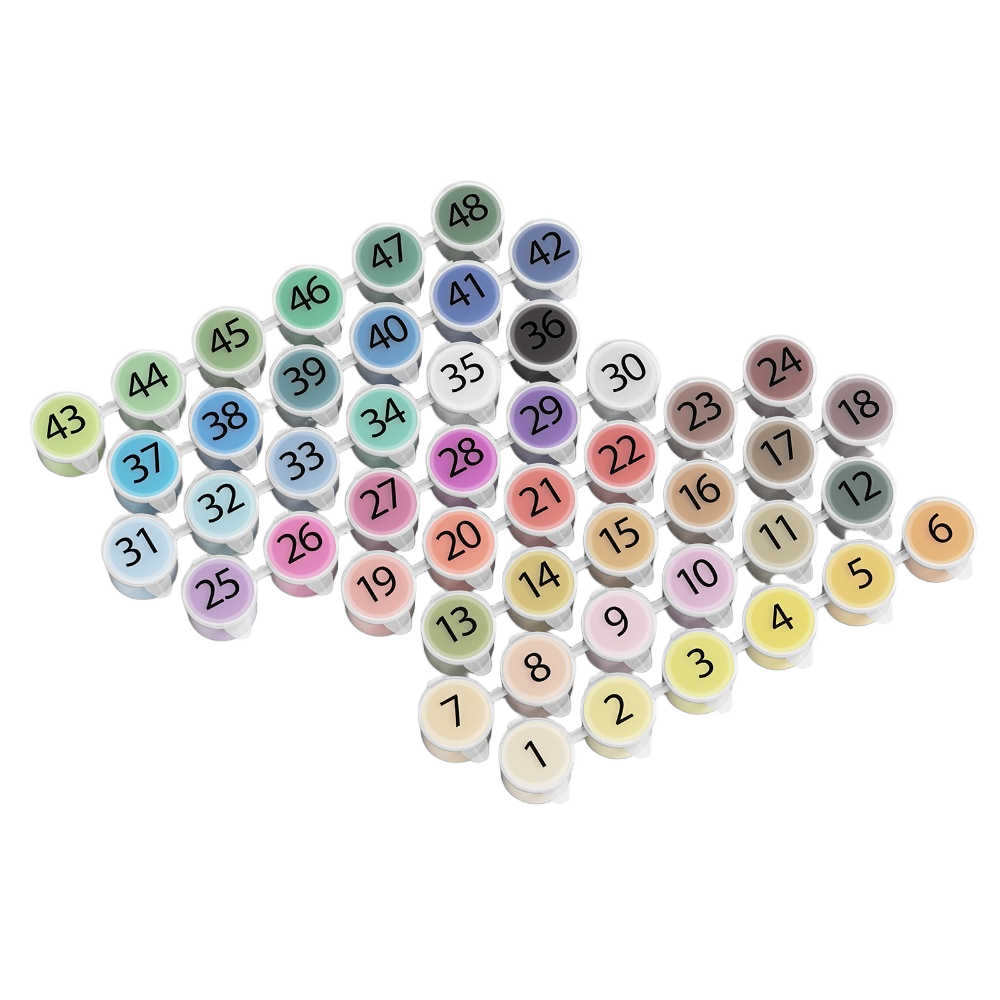 48 flotte akrylfarver i nummererede bøtter