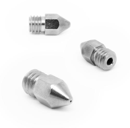 Munstycket är tillverkat av ett 360-gradigt mässingsbasmaterial och belagt med TwinClad XT-beläggning. TwinClad XT är en nickelkompositbeläggning utformad för mycket låg friktion. Den ger en av de lägsta friktionskoefficienterna, bättre än nickel med PTFE-samavsättning. Denna beläggning är också mycket hård och slitstark. Om du arbetar med slipande kolfiber, rostfritt stål, träfyllda eller andra metallfyllda filament, kommer detta att avsevärt förbättra munstyckets livslängd.