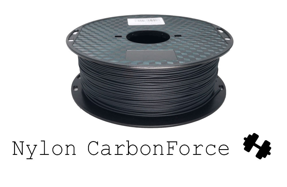 3DE Nylon CarbonForce är ett material som kommer att användas för föremål där styrka och seghet är nyckelord. CF-Nylon är baserat på en PA6-sampolymer kombinerad med kolfiber. 3DE CF-Nylon har en hög (HDT) på runt 130 °C , vilket gör det möjligt att trycka föremål som kommer att användas i en varm miljö.