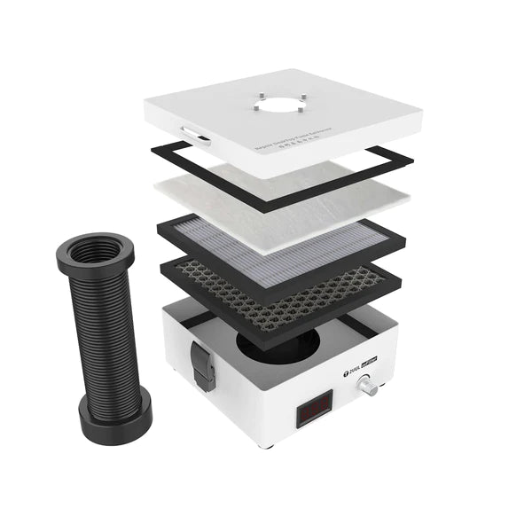 Denna luftrenare är utrustad med kraftfull kolfiltreringsteknik som effektivt avlägsnar skadliga ämnen och lukter från luften. Om du skriver ut med ABS eller liknande material eller gör små reparationer med lödning eller liknande, kan denna extraktion skydda dig från alla partiklar. Den kan fånga upp och neutralisera sekret som kan vara skadligt för din hälsa och säkerställer att din arbetszon förblir fri från farliga partiklar.