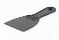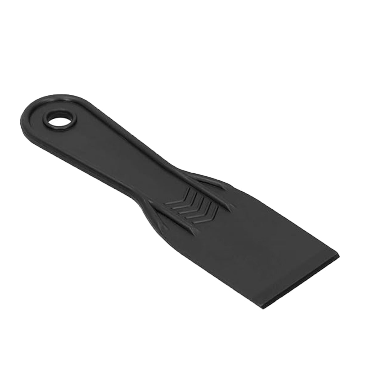 Svart plastspatel med vinklad vass kant, lämplig för arbete med harts.