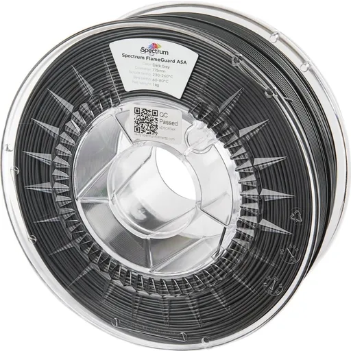 Spectrum FlameGuard ASA 275-filament är ett avancerat material designat för användning i stationära 3D-skrivare. FlameGuard-versionen är specifikt konstruerad för att uppfylla de stränga flamskyddskraven i UL94 V0-klassificeringen, baserat på den beprövade ASA 275-formeln. Det innebär att filamentet eller delar som skrivs ut med det, när det utsätts för ett vertikalt bränntest, slocknar själv inom 10 sekunder utan att sprida lågan.