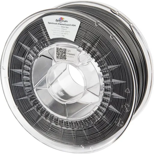 Spectrum FlameGuard ASA 275-filament är ett avancerat material designat för användning i stationära 3D-skrivare. FlameGuard-versionen är specifikt konstruerad för att uppfylla de stränga flamskyddskraven i UL94 V0-klassificeringen, baserat på den beprövade ASA 275-formeln. Det innebär att filamentet eller delar som skrivs ut med det, när det utsätts för ett vertikalt bränntest, slocknar själv inom 10 sekunder utan att sprida lågan.