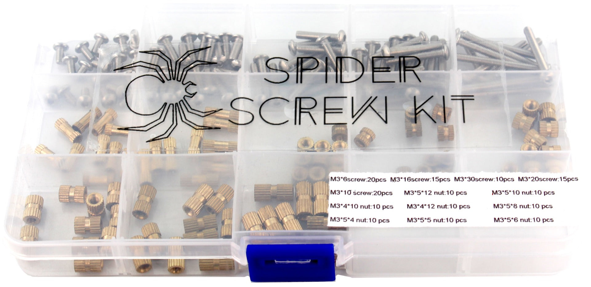 Vårt nyaste SpiderScrew-kit. 80 st M3-skruvar och 80 st räfflor i olika storlekar.