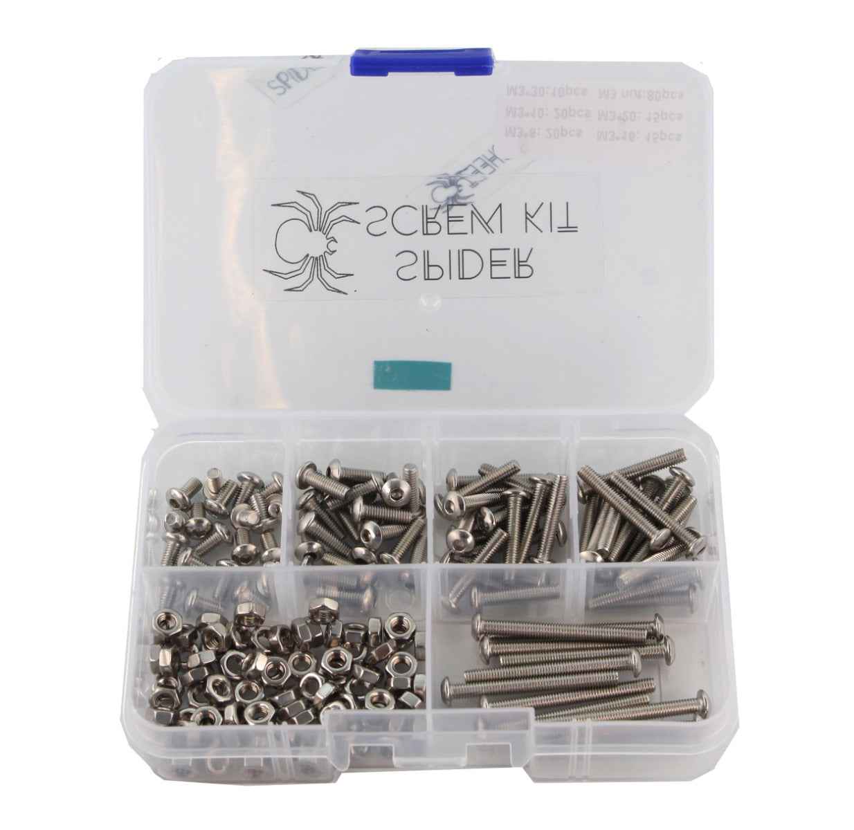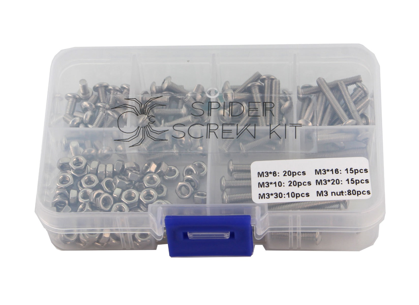 Vårt nyaste SpiderScrew-kit. 80 stycken M3-skruvar med matchande muttrar i olika storlekar.