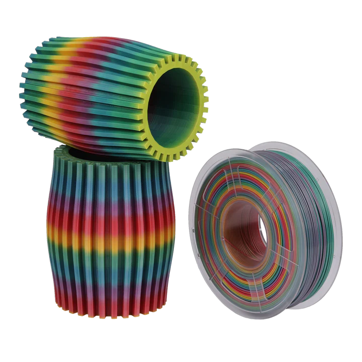 Filament från SUNLU för din FDM 3D-skrivare med ett snyggt, glansigt utseende. Denna regnbågsfärg ger ett vackert, skiftande färgspel.