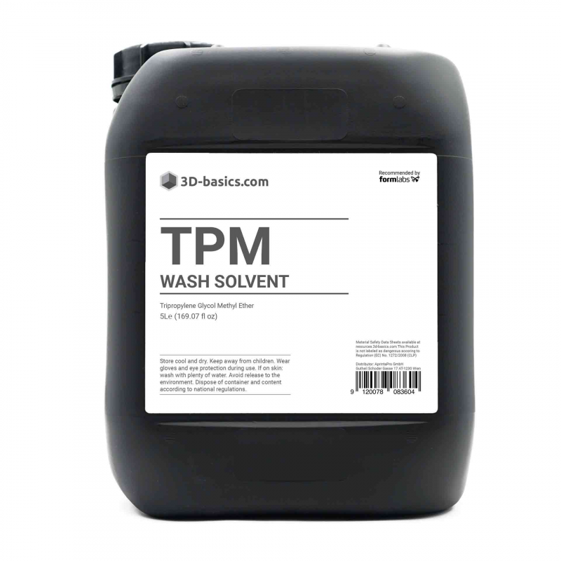 TPM Wash Solvent (tripropylenglykolmonometyleter) är ett icke-brandfarligt lösningsmedel med låg lukt som kan användas för att rengöra och lösa upp ohärdad harts på SLA/DLP 3D-utskrivna delar.