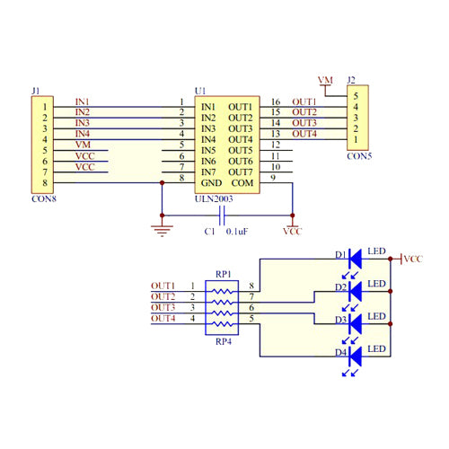 - ULN2003 Darlington använder högpresterande stegmotordrivkrets