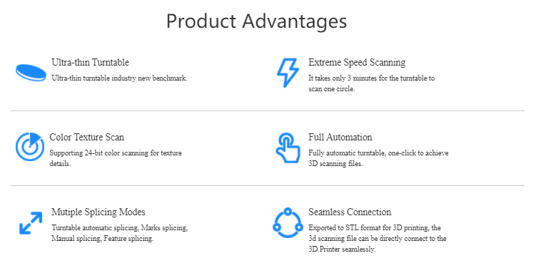 Wiiboox Reeyee SP Desktop 3D-skanner är en 3D-skanner med vitt ljus. Den har två skanningslägen: automatisk skanning med roterande spelare och frihandsskanning. Med den industriella visionssensorn och högupplösta linsen kan dess noggrannhet nå 0,1 mm.