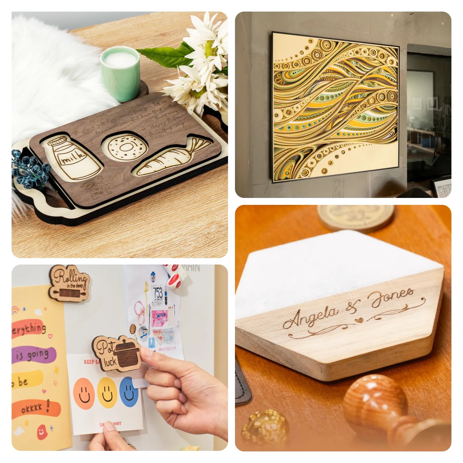 Med xTool Laser Material Kit får du en mångsidig uppsättning material som är perfekta för gravering och skärning med xTool M1 Ultra. Kitet innehåller en kombination av trä, marmor och magnetiskt material, vilket gör att du kan utforska en mängd olika kreativa projekt.